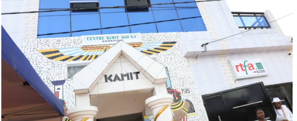 Situé dans la capitale togolaise, commune du golfe 6, canton de Baguida, le centre KAMIT est un ensemble architectural bâti sur 300 m2 avec un hall polyvalent de 200 m2 autour de 10 pylônes qui rappelle les temples de l’Egypte antique. A l’entrée, la mezzanine d’environ 60 m2 offre un espace de lecture avec un dépôt réservé à des ouvrages spécialisés sur la culture africaine. Au fond du hall se trouve à l’étage au-dessus du podium, l’espace audiovisuel pour diffuser les différentes productions sur la culture africaine.